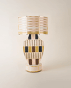 A sculptural table lamp defined by circles and grids, and playfulness.